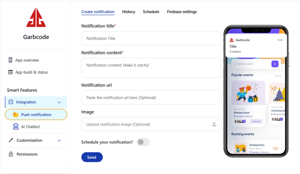 To send and schedule push notification to your users from Quikapp follow the steps given below: